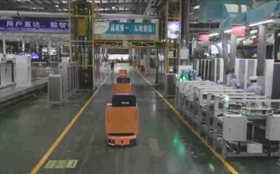 为车载冰箱物流配送打造的智能解决方案,,,包含产中物流通过潜伏举升AMR搬运至线边,,产后成品物流智能仓储,,流程包含产中物流智能齐套入库,,,,线边安灯叫料AMR智能配送至线边,,成品入库、、、出库,,,通过无人堆高车机器人,,,智能仓储管理替代人工作业管理,,实现更高存储、、更高效率、、、、更具柔性化的解决方案。。